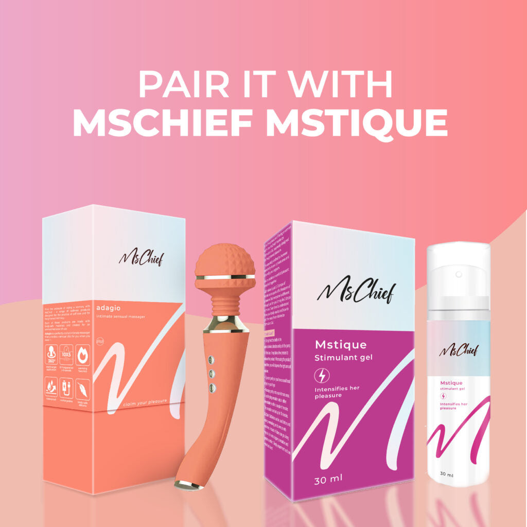 Experience the most sensual orgasms with the MsChief- Adagio Wand massager. Comes with a flexible and wide head with body-friendly, silicone material. This wand comes with 10 frequencies and 5 speeds for you to explore different sensations. The heating of the massager is managed with constant temperature control.