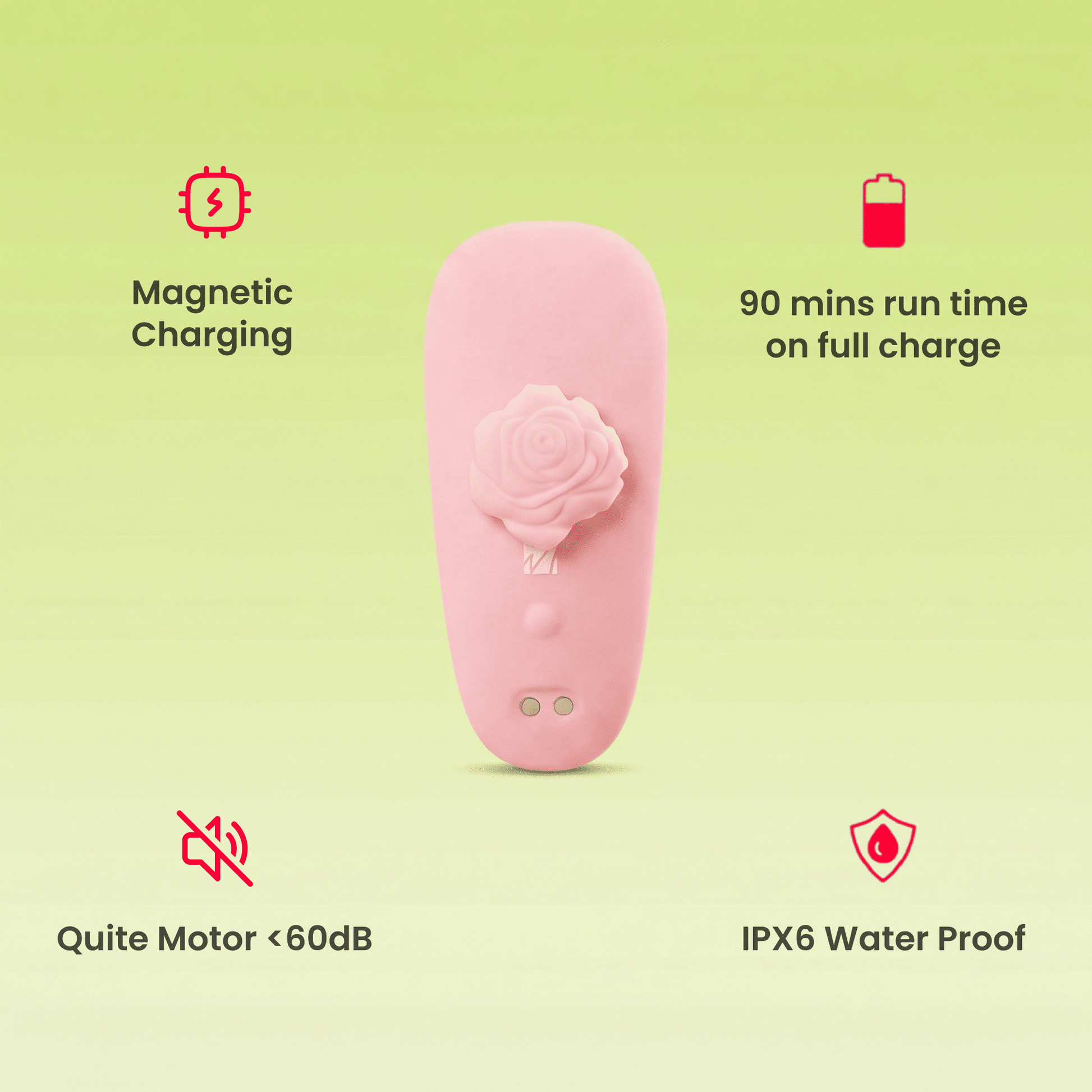 Place the massager on the inside of your undergarment, with the massaging side facing your body and aligned with the delicate area. Use the external magnetic clasp to secure the massager from the outside of your undergarment. The magnet will snap into place, holding the device firmly. Now you are ready for the experience.