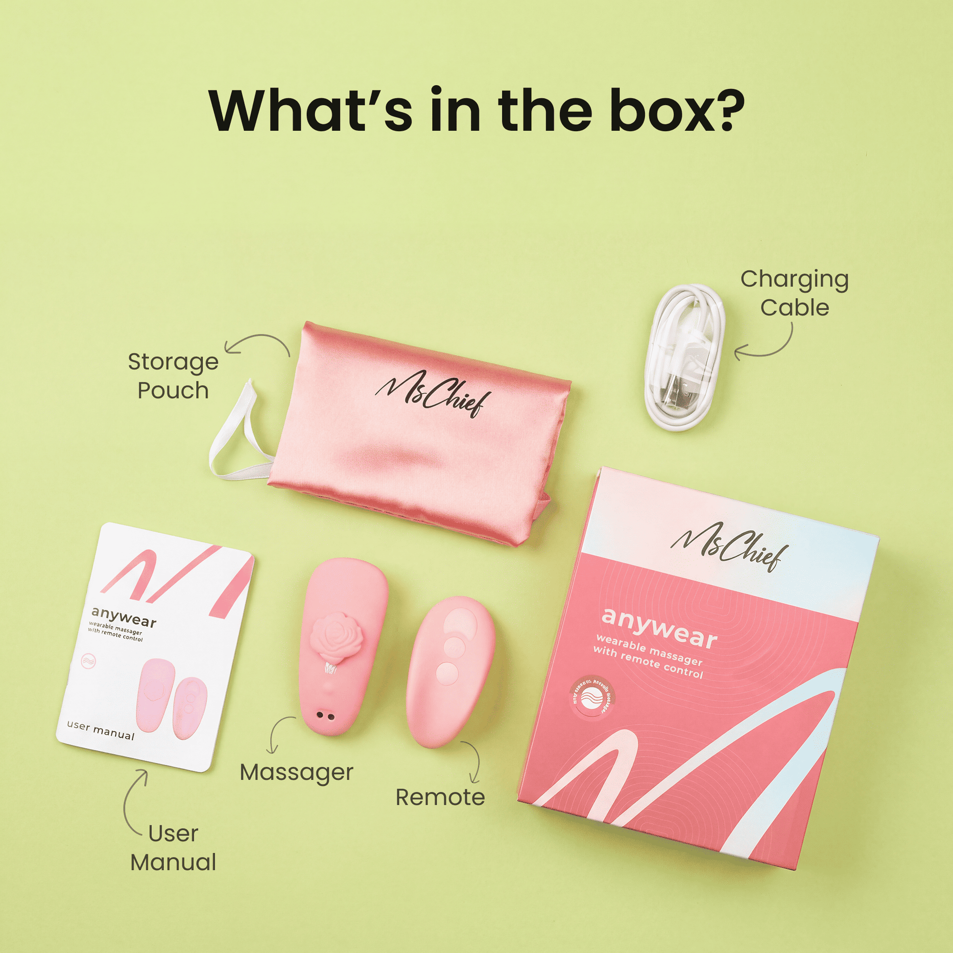 Mschief Anywear is a wearable remote-controlled massager with a magnetic clasp, 3 speeds, and 7 patterns. Compact, waterproof, and whisper-quiet, it’s perfect for on-the-go relaxation.