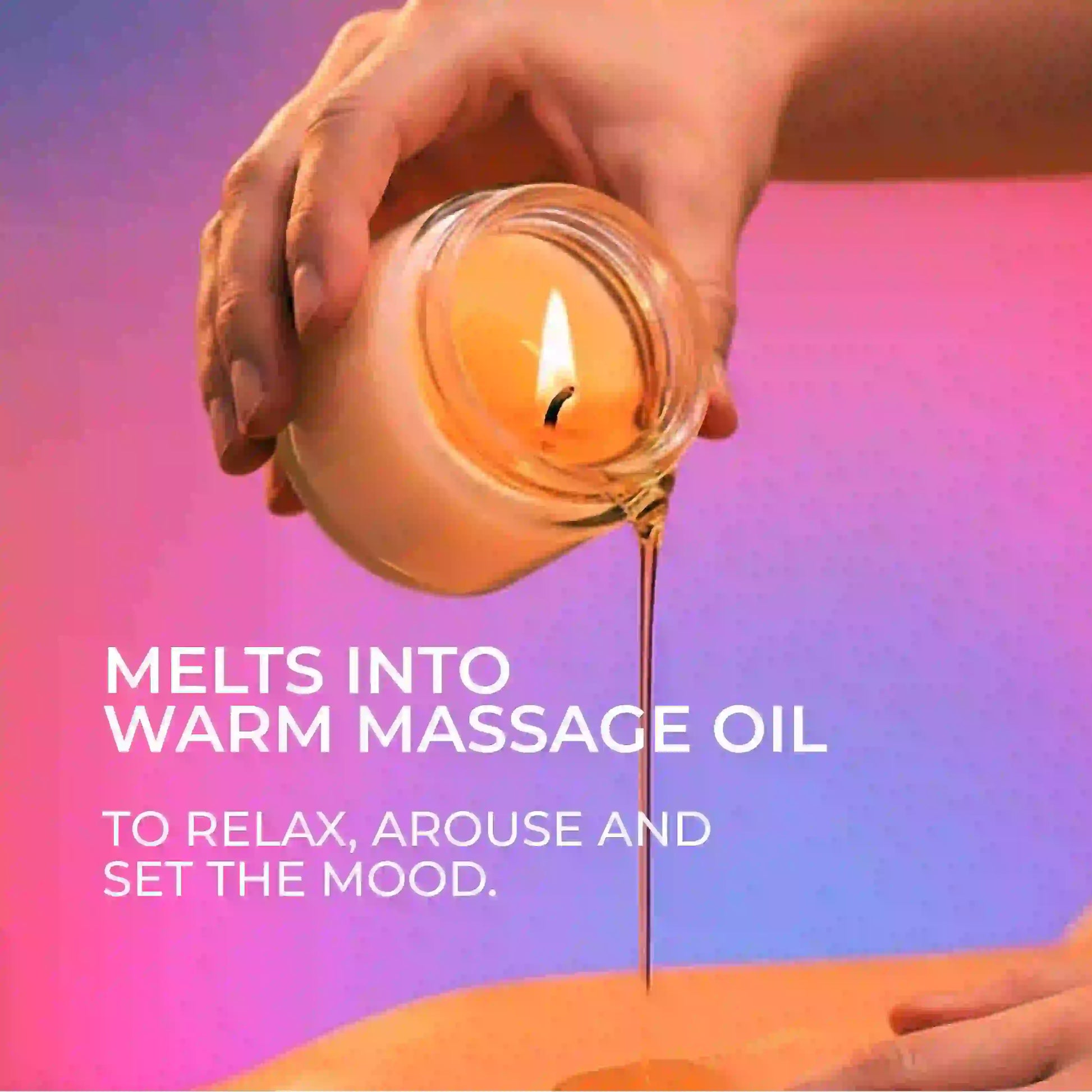 Light it, melt it, pour it, touch. This warm massage candle turns into a silky body oil that glides over skin and sets the mood in seconds.